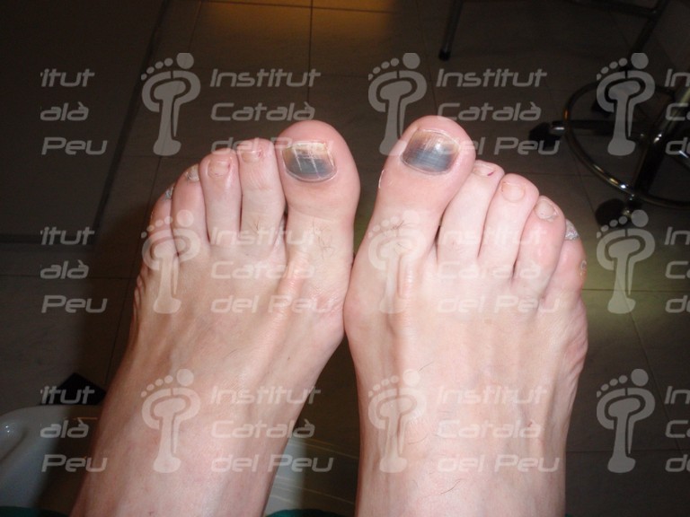 Se caracteriza por la rotura de vasos capilares del lecho ungueal provocando una hemorragia de sangre que queda depositada entre el lecho ungueal y la uña. Dicha extravasación de sangre provoca una presión sobre los tejidos adyacentes y por lo tanto dolor. En ocasiones, la presión ejercida por el hematoma rompe la epidermis y provoca un drenado espontáneo.